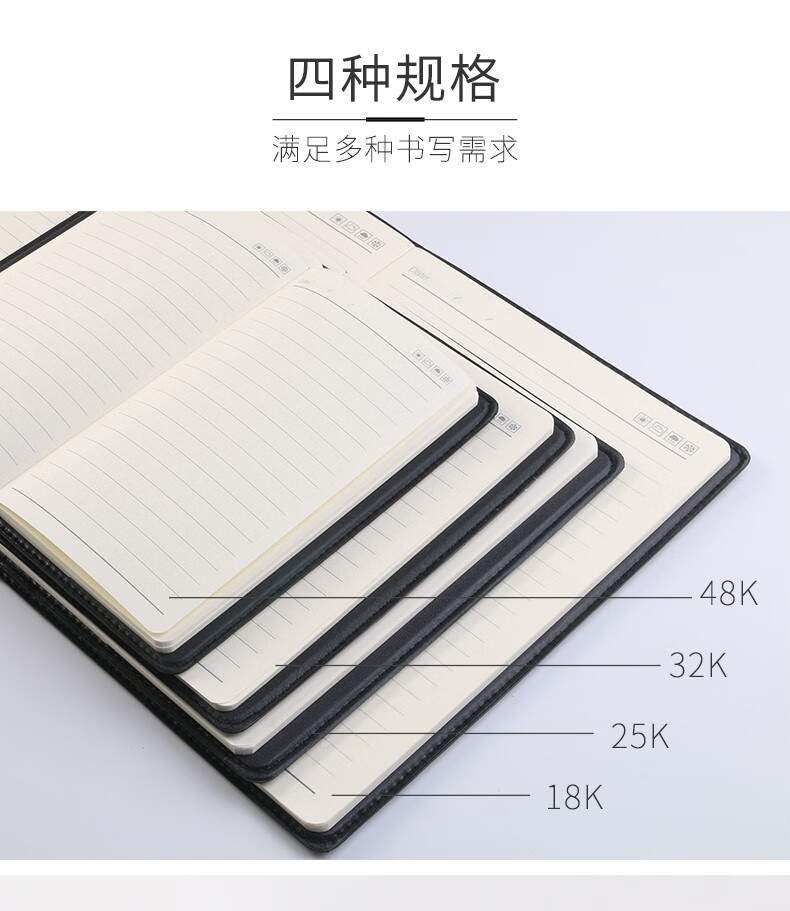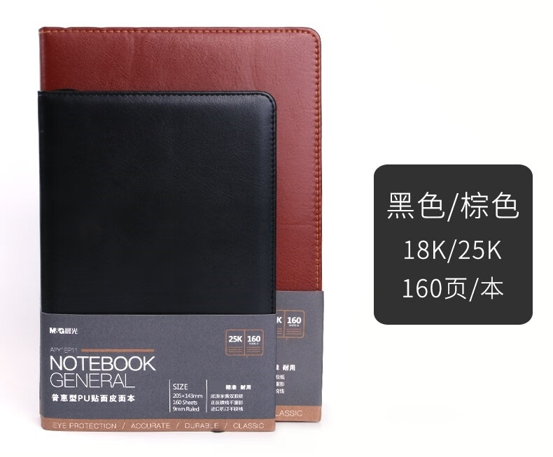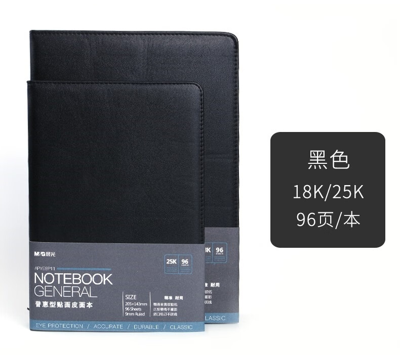 ¥19.80■晨光(M&G)皮面本 日記辦公記事本筆記本會議記錄本皮面本 普惠型皮面記事本 APYE7P11黑色18K-96頁 3本裝