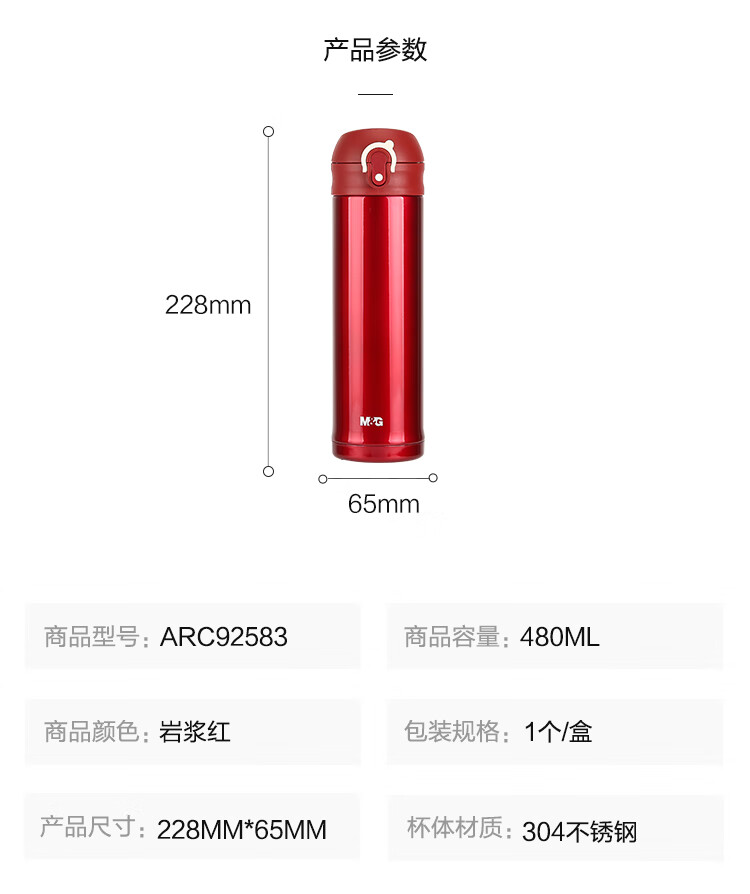 ¥63.00匡迪保溫杯水杯華象保溫杯水杯創(chuàng)意彈跳蓋高真空保溫杯男女彈蓋杯一鍵開(kāi)啟不銹鋼保溫杯庚美水杯 寶石紅520ml
