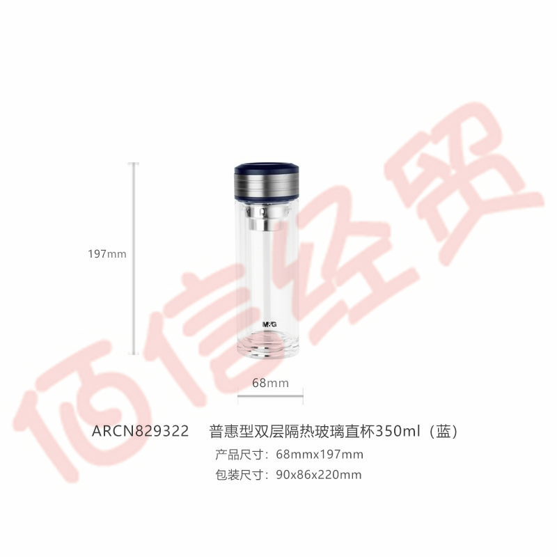■晨光普惠雙層隔熱玻璃直水杯350ml藍ARCN8293 自營