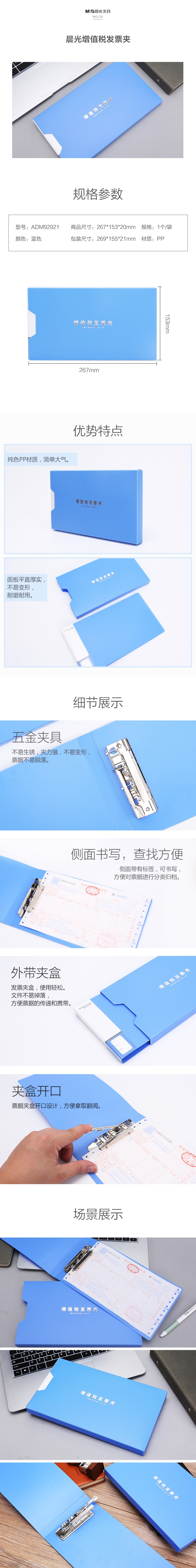 ■晨光增值稅發(fā)票夾(帶外殼)ADM92921藍 自營