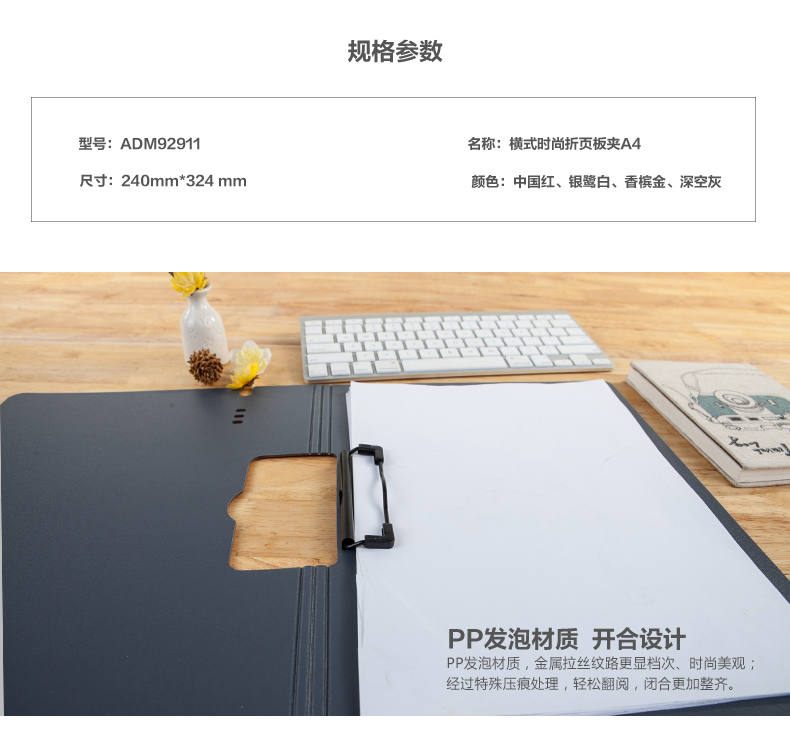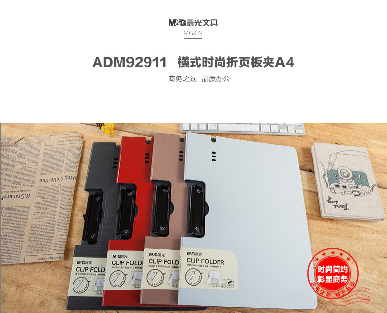■晨光A4橫式時尚折頁板夾--顏色隨機--ADM92911--1個裝 自營