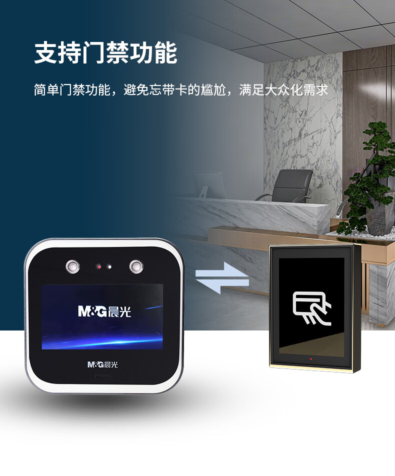 ¥736.00得力(deli)DL-ACS804-TW 人臉識別測溫門禁考勤一體機 8英寸屏幕顯示醫(yī)院學校寫字樓快速測溫識別(閘機版)