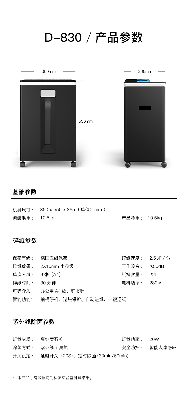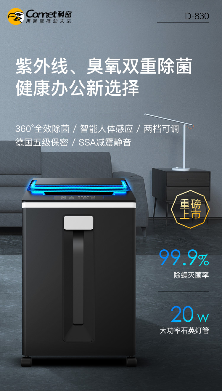 科密(comet)D-830 碎紙機(jī) 紫外線臭氧除菌除螨 德國(guó)5級(jí)高保密彈簧減震 辦公商用家用紙張粉碎機(jī) 自營(yíng)