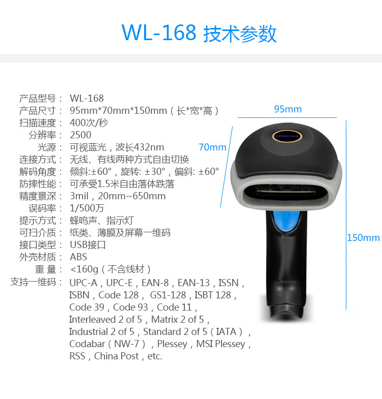 ¥969.03歌派(GEPAD) 無線掃描槍 二維工業(yè)級(jí)掃碼槍3mil高精度 商超倉儲(chǔ)快遞掃碼器 金屬條碼掃描槍GW-2981
