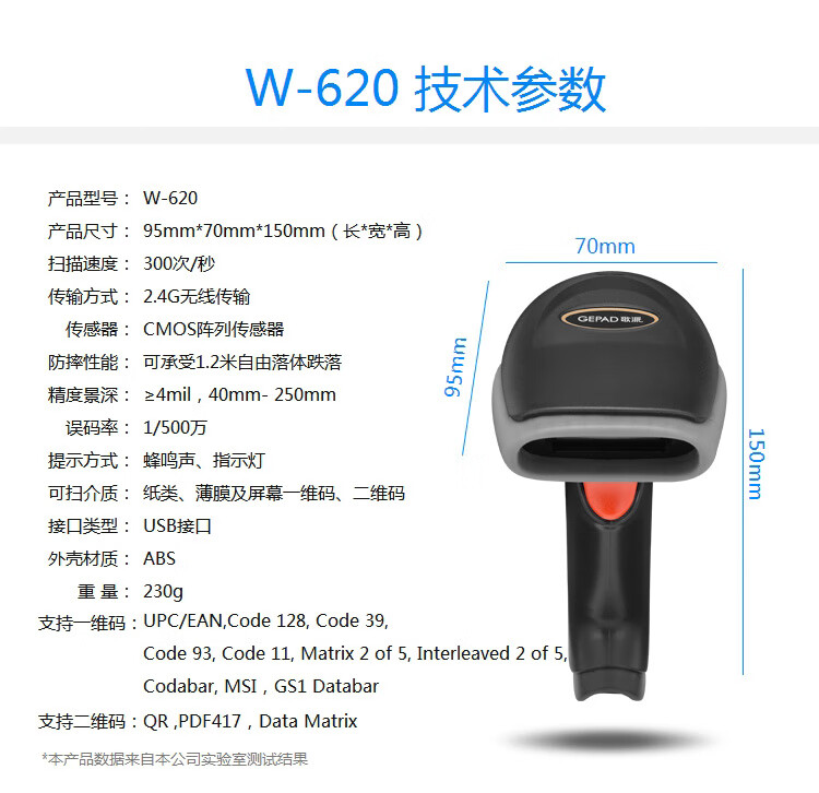 ¥969.03歌派(GEPAD) 無線掃描槍 二維工業(yè)級掃碼槍3mil高精度 商超倉儲快遞掃碼器 金屬條碼掃描槍GW-2981