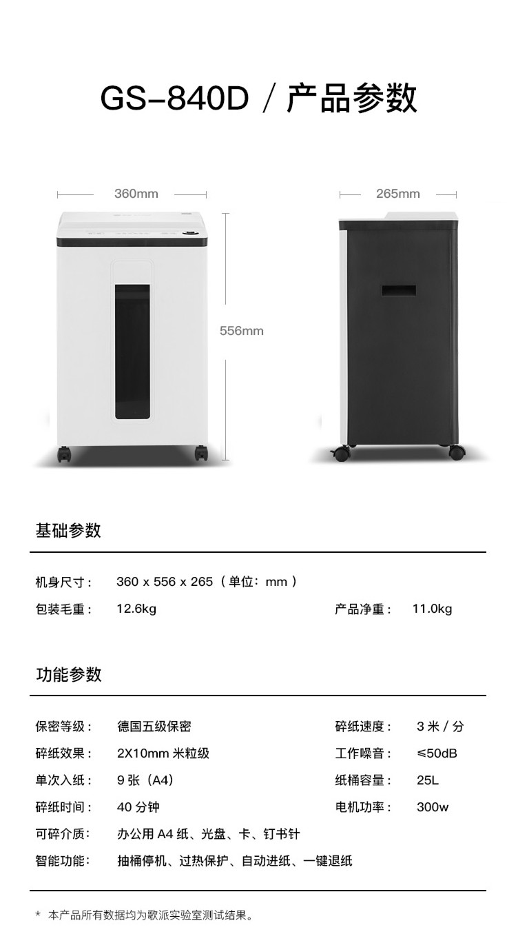 歌派碎紙機(jī)GS-840D德國5級(jí)高保密碎紙機(jī)辦公家用 碎卡碎光盤小顆粒紙張粉碎機(jī) 自營