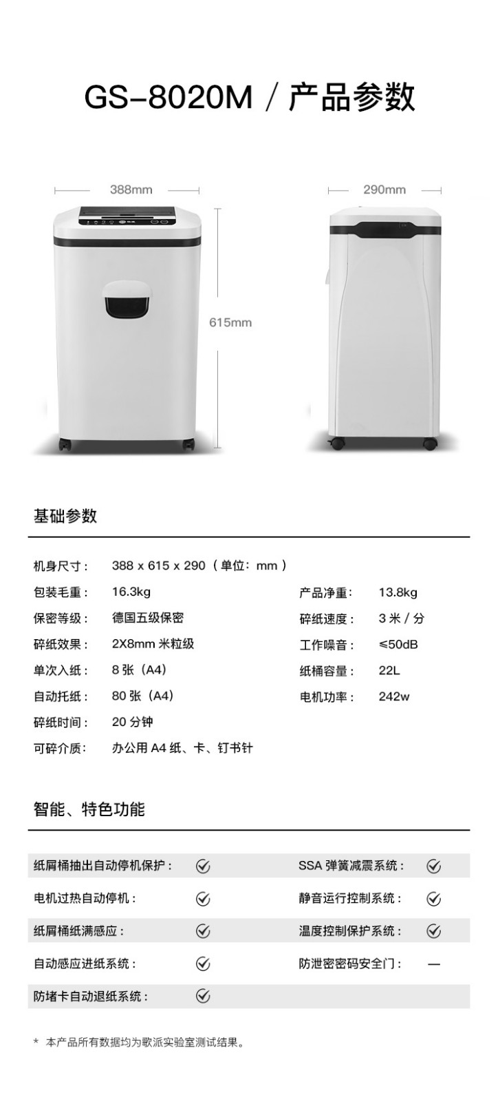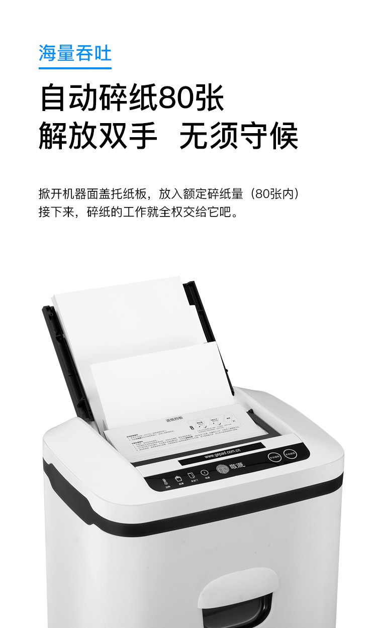 歌派GS-8020M碎紙機 全自動型進(jìn)紙5級保密大型辦公小顆粒粉碎機 80張8張雙入口20分鐘 歌派GS8020M標(biāo)配 自營