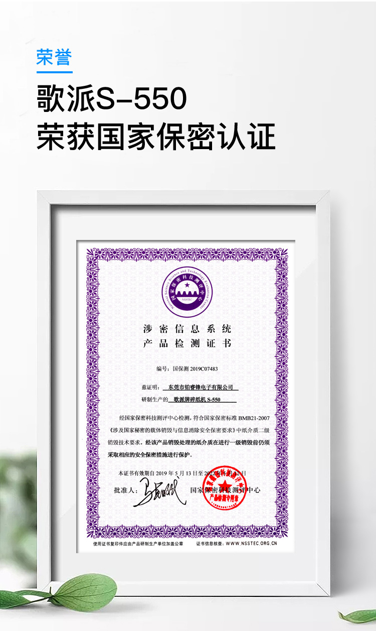 歌派(GEPAD)5級保密辦公商用碎紙機(單次5張 持續(xù)30分鐘 20L)S-550 自營