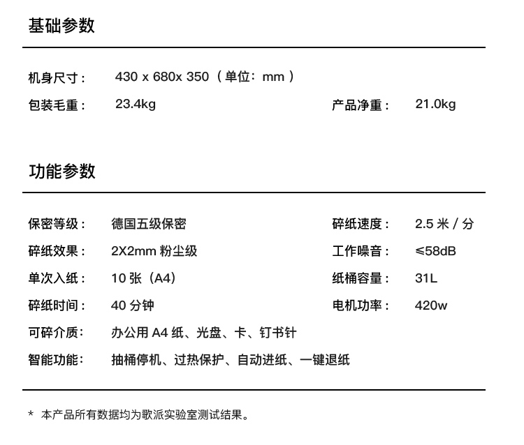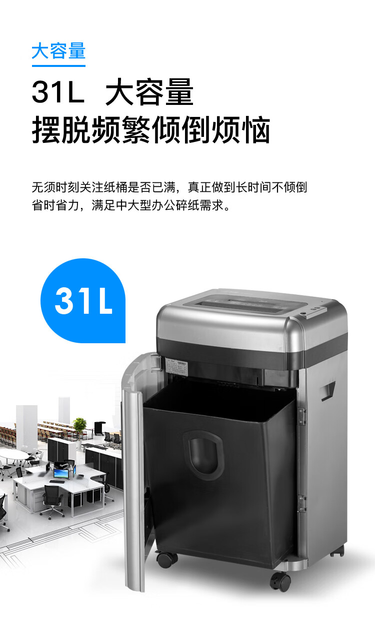 歌派(GEPAD)5級(jí)保密辦公商用碎紙機(jī)(單次10張 持續(xù)40分鐘 31L 可碎卡、光盤)S-610D 自營(yíng)
