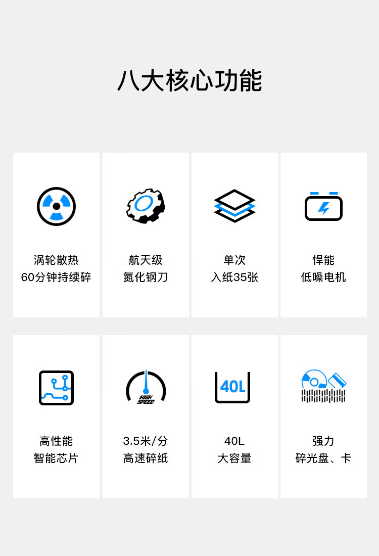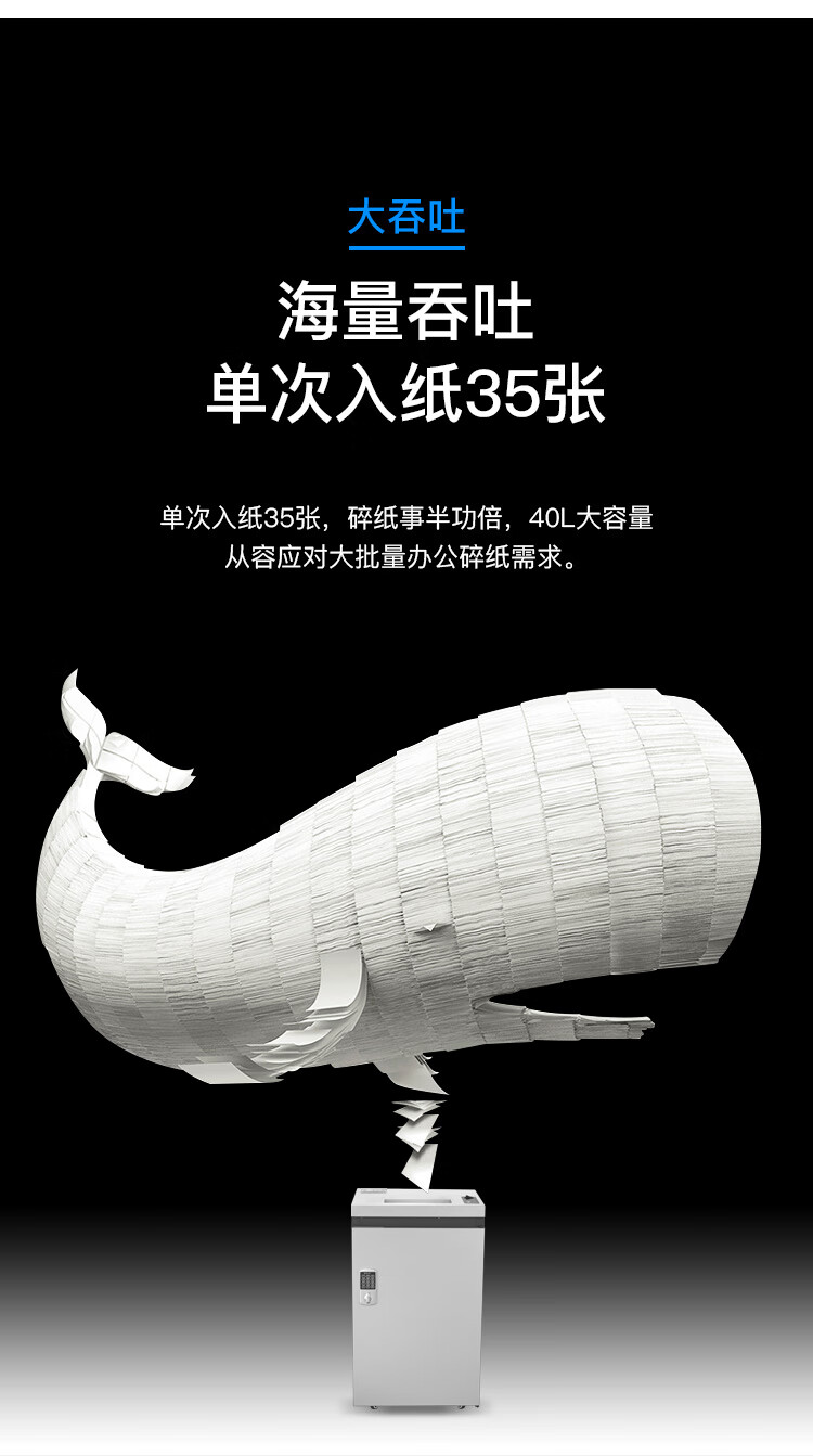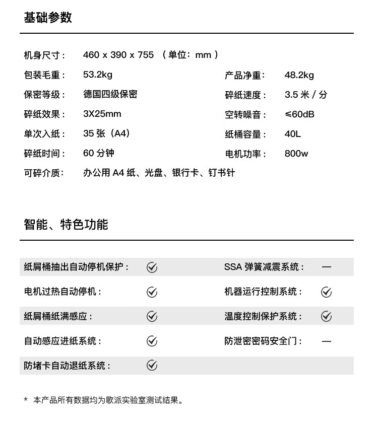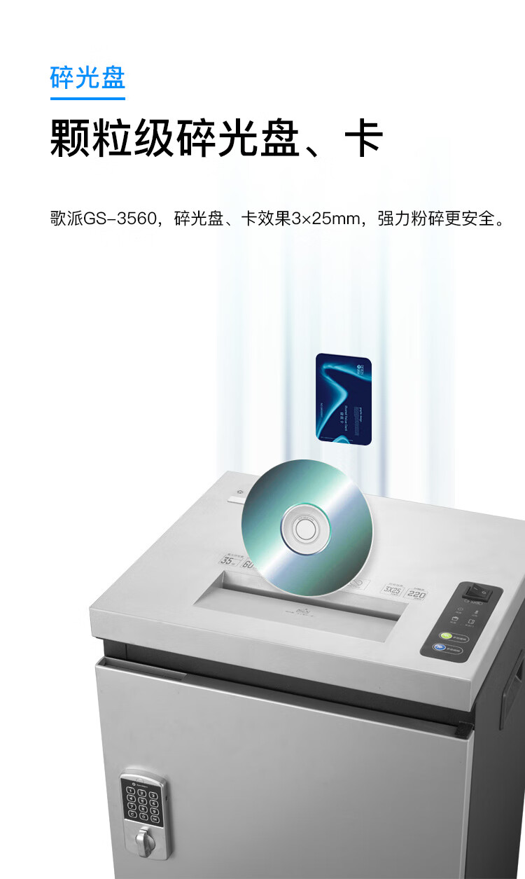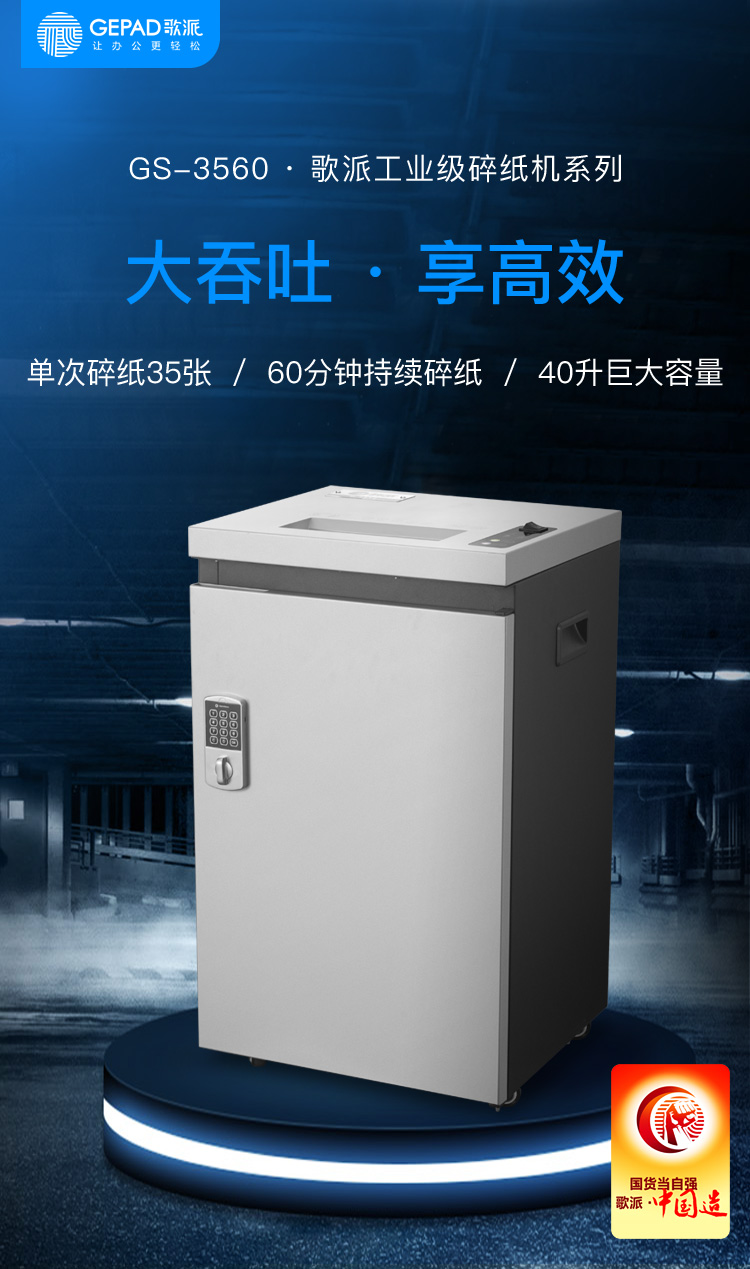 歌派(GEPAD)4級(jí)保密專(zhuān)業(yè)銷(xiāo)毀碎紙機(jī)(單次35張 持續(xù)60分鐘 40L 可碎卡、光盤(pán))GS-3560 自營(yíng)