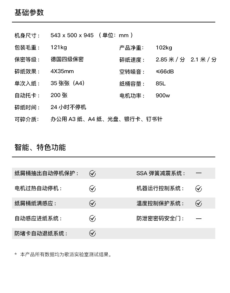 歌派(GEPAD)4級保密專業(yè)銷毀碎紙機(單次35張 持續(xù)24小時 85L 可碎卡、光盤)GS-200K 自營