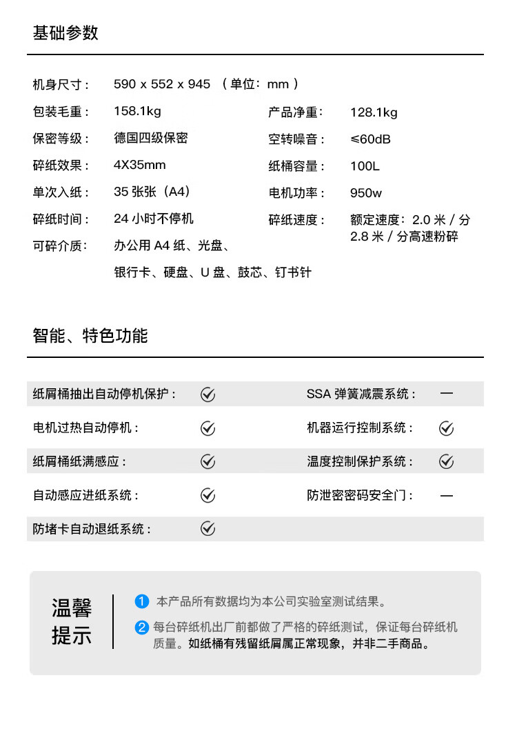 歌派(GEPAD)4級保密專業(yè)銷毀碎紙機(jī)(單次35張 持續(xù)24小時(shí) 100L 可碎卡、光盤、U盤、硬盤、硒鼓)GS-601M 自營