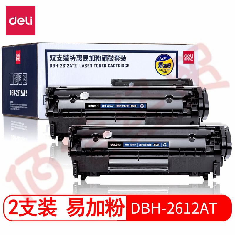 ■得力(deli)DBH-2612AT2易加粉硒鼓 12A打印機硒鼓2支裝 適用HP1020plus M1005 1010 1012 1015 3050 M1319f) 自營