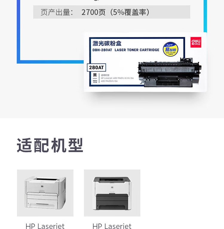 ■得力(deli)DBH-280AT 硒鼓/碳粉盒(適用適用惠普HP LaserJet 400 M401n/d/dn/dw 400 M425dn/dw) 黑色 自營