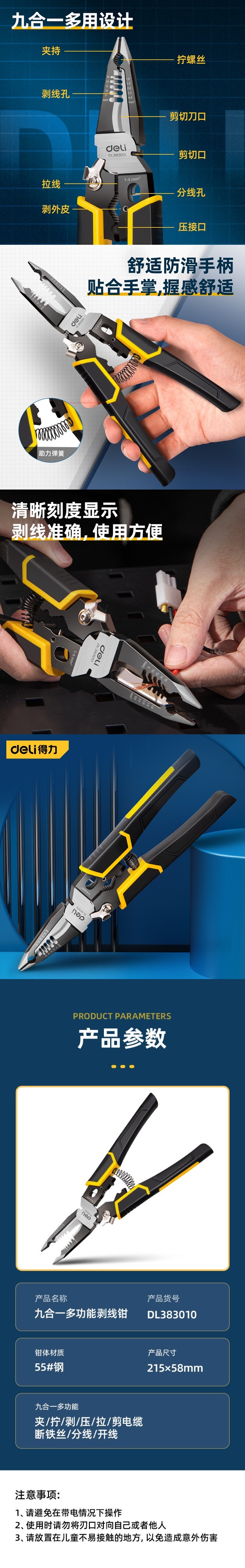 ■得力(deli)DL383010_便攜式剝線鉗_多功能剝線器_九合一多功能剝線鉗 自營