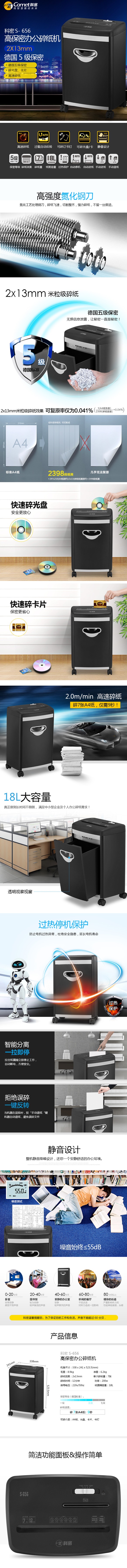 科密 S-656 5級(jí)保密辦公商用碎紙機(jī)(單次7張 持續(xù)12分鐘 18L 可碎卡、光盤) 2*15mm 碎6張 2.5米/分 碎卡光盤 自營
