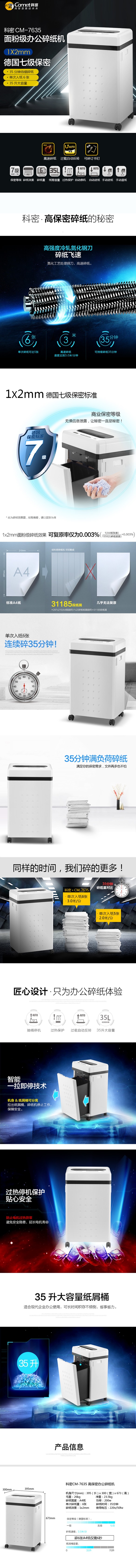 科密碎紙機(jī)CM-7635 7級(jí)保密辦公商用 單次6張 持續(xù)35分鐘 粉碎效果1mm*2mm 國保測(cè)認(rèn)證保密等級(jí)二級(jí) 35L 自營