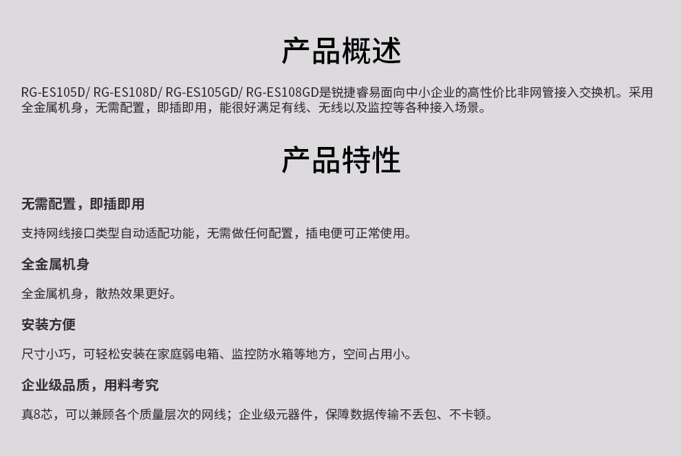 睿易銳捷 5口千兆交換機(jī)RG-ES105GD