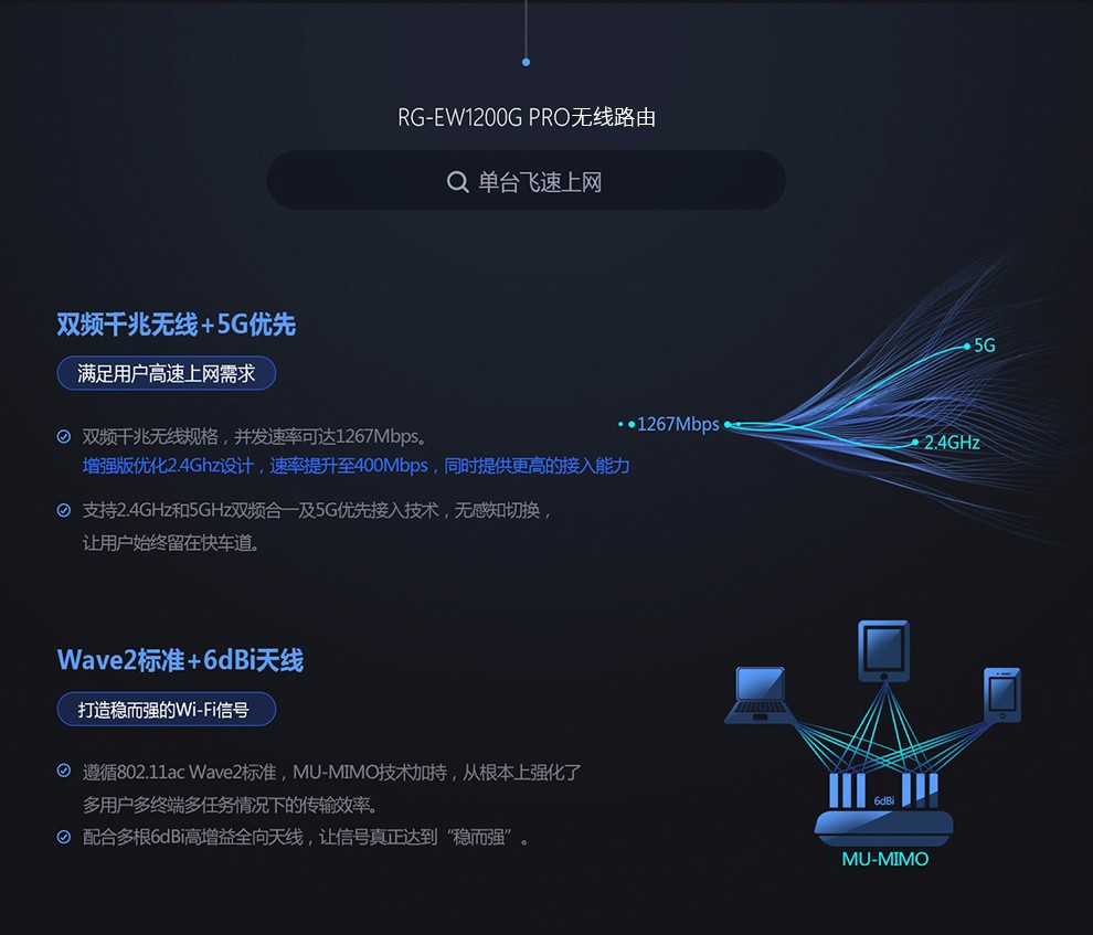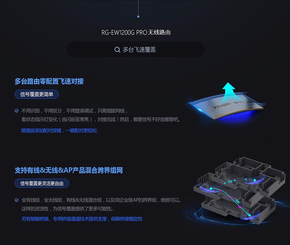 ¥2996.00銳捷(Ruijie)無線路由器 千兆RG-EW1200G pro雙頻wifi信號放大器1300M 黑色
