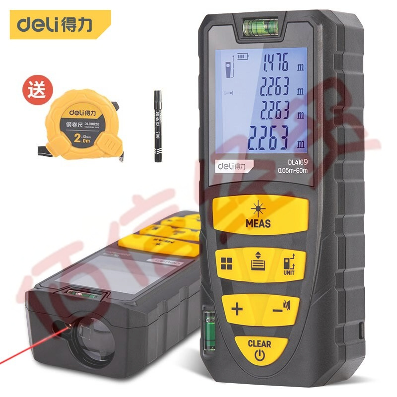 ■得力激光測(cè)距儀高精度電子尺-裝修量房?jī)x手持式級(jí)測(cè)量工具-60米雙向水平泡 DL4169 自營(yíng)