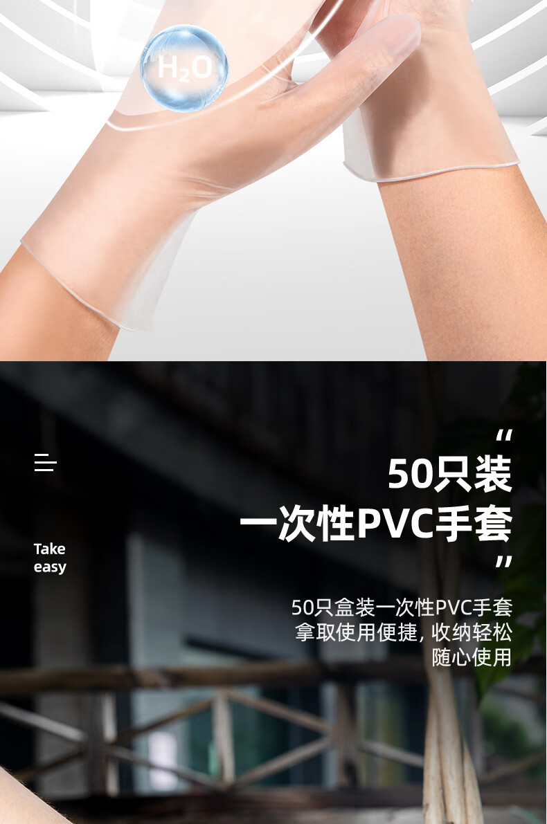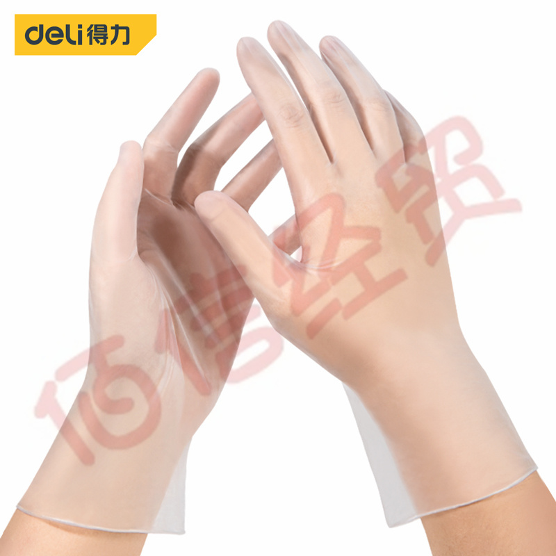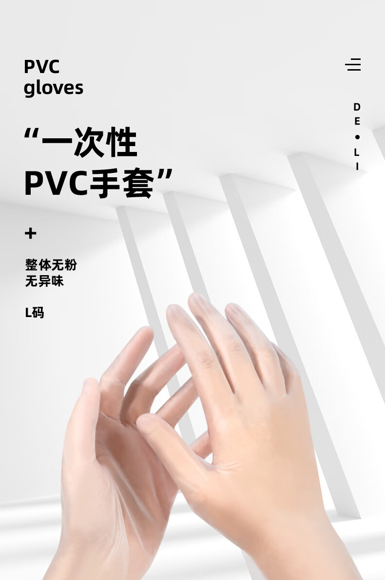 ■得力(deli)DL521050L 一次性透明PVC手套食品級透明勞保餐飲清潔【L碼】50只/盒