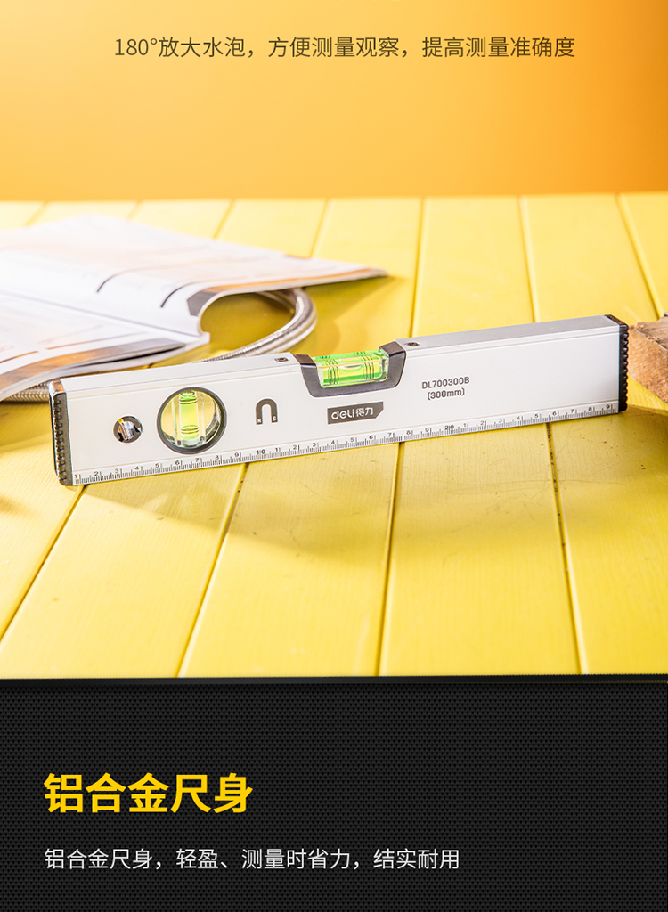 ■得力(deli) DL700300B強(qiáng)磁性水平尺鋁合金水平測(cè)量尺水平儀300mm 自營(yíng)