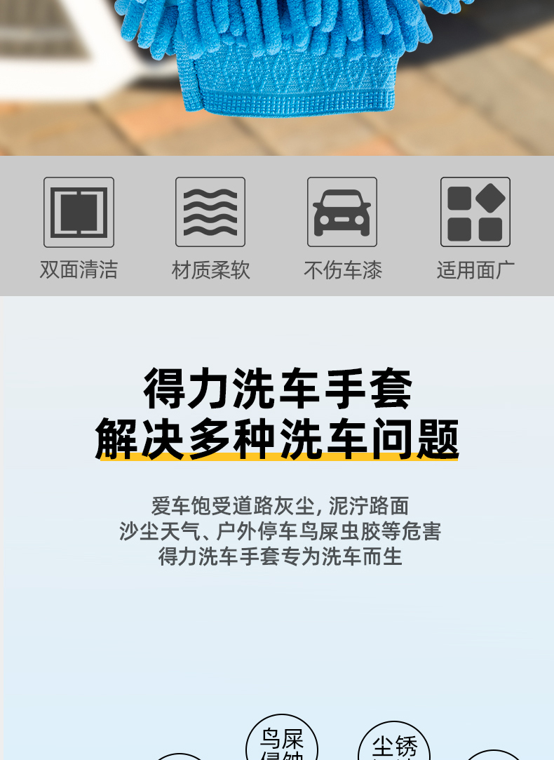 ■得力DL882004- 雙絨面洗車手套清潔用品- 加長絨毛加大加厚掌面 自營