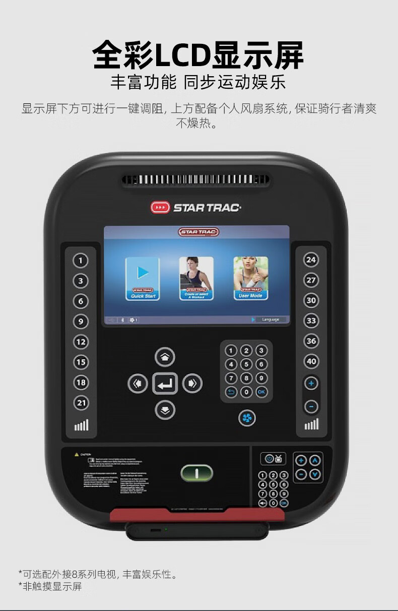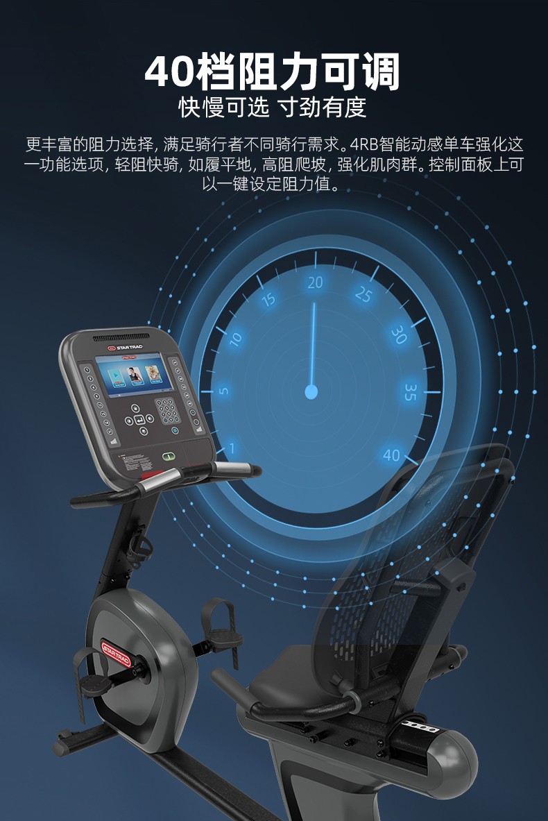 Star Trac® 星馳4系列靠背單車完美契合企業(yè)、酒店、會所、康復(fù)等垂直市場的需求,配有全彩LCD面板,阻力快速調(diào)節(jié)鍵,還可以選配外置電視,為用戶的訓(xùn)練增添更多娛樂功能,是您的絕佳選擇。
