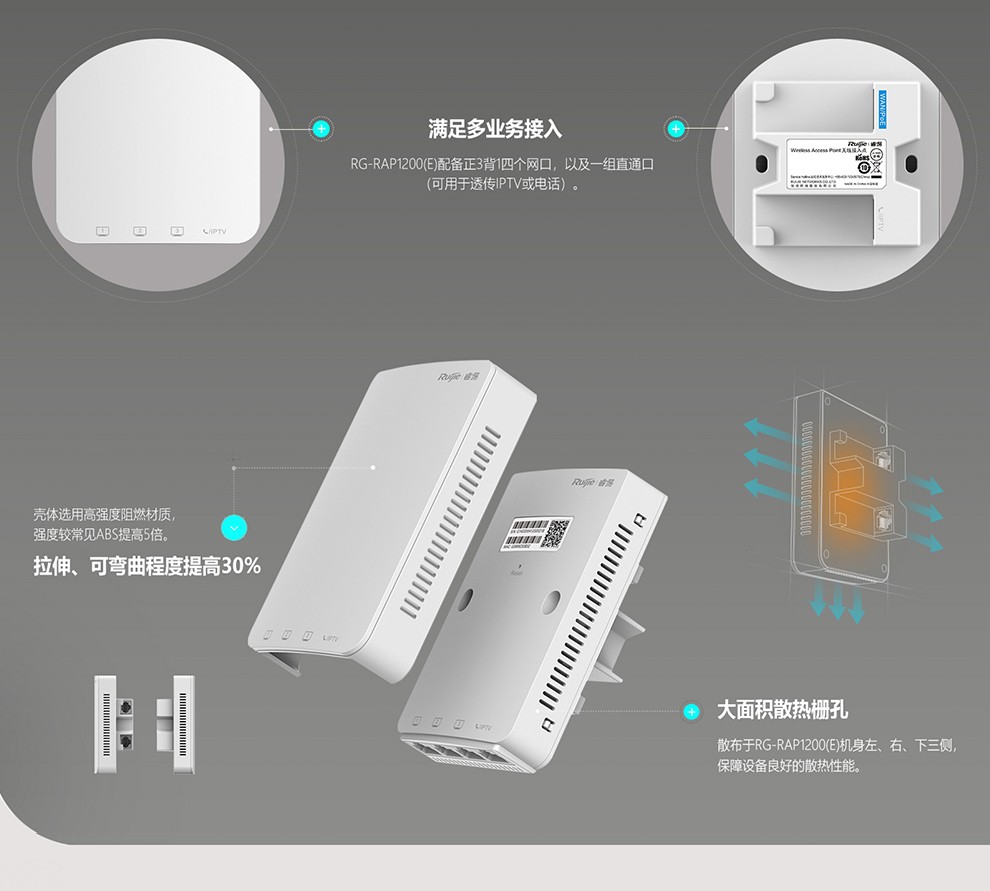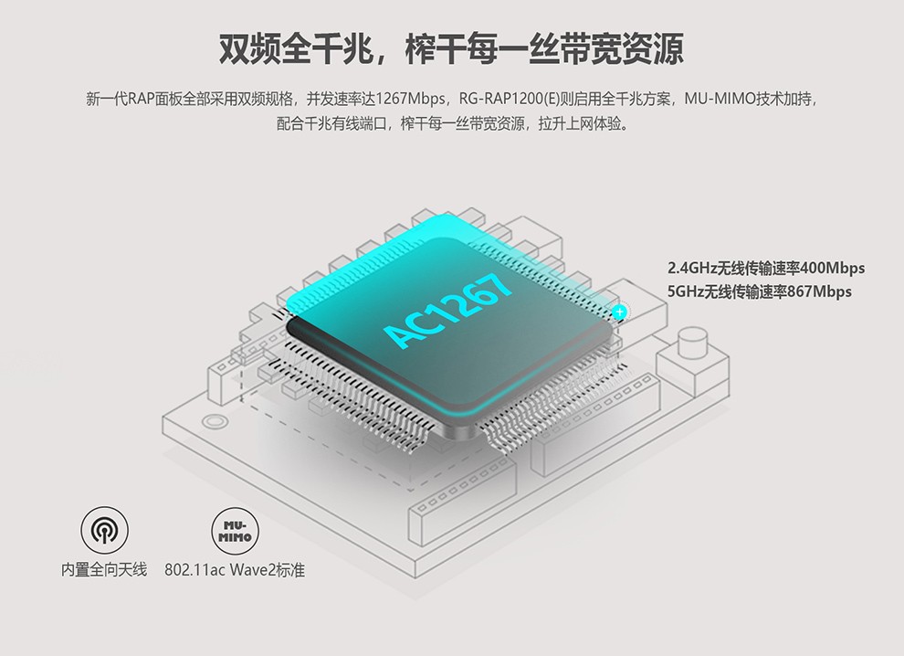 ¥896.00銳捷(Ruijie)無線ap面板千兆 雙頻1267M RG-RAP1200(E)雙LAN口無線接入點 RG-RAP1200(E)