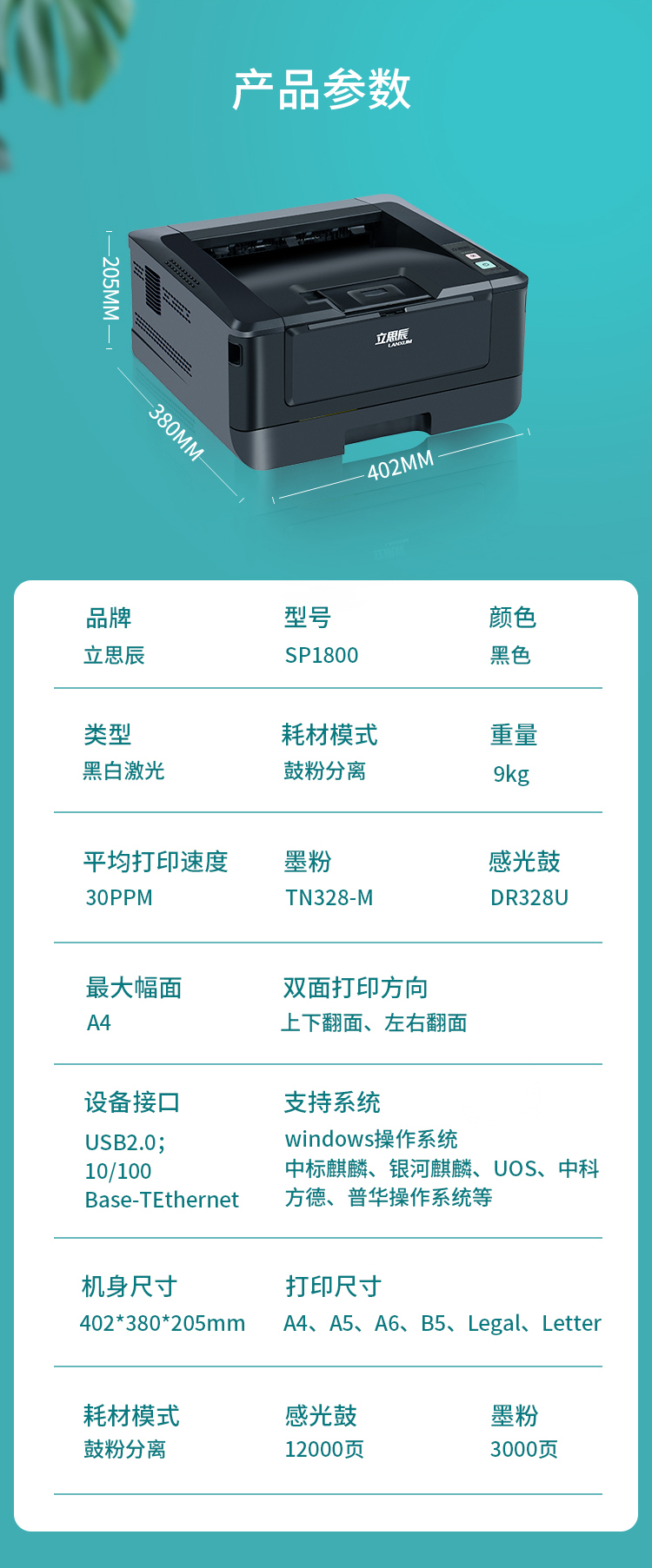 立思辰(LANXUM)安全增強(qiáng)型打印機(jī)SP1800 、黑白激光、雙面打印、安全增強(qiáng)屬性 自營