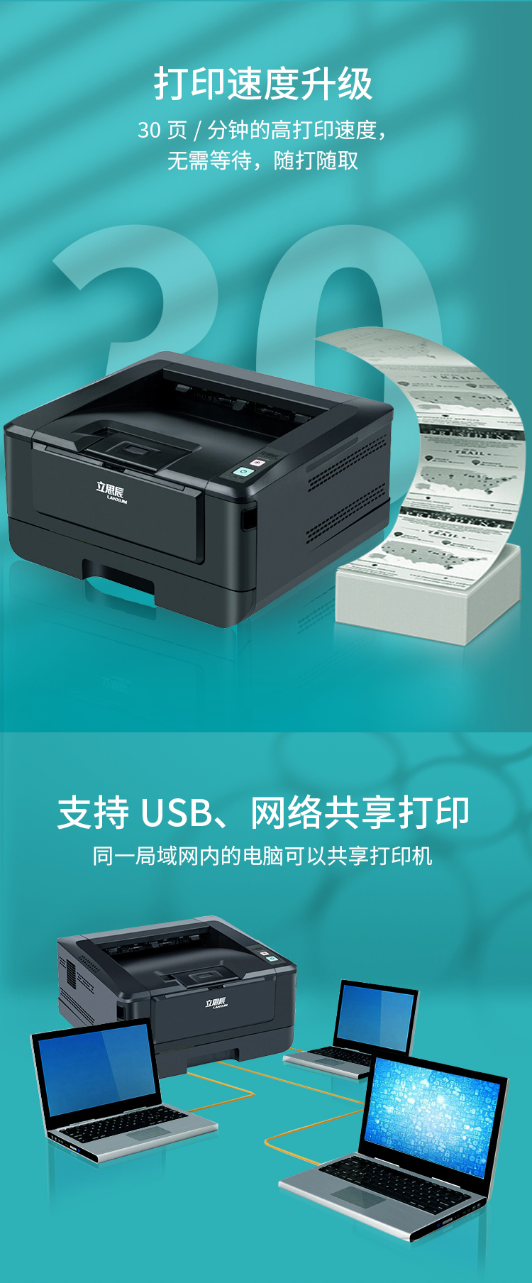 立思辰(LANXUM)A4激光黑白打印機GA3032dn 、A4幅面、黑白激光、網(wǎng)絡打印 自營